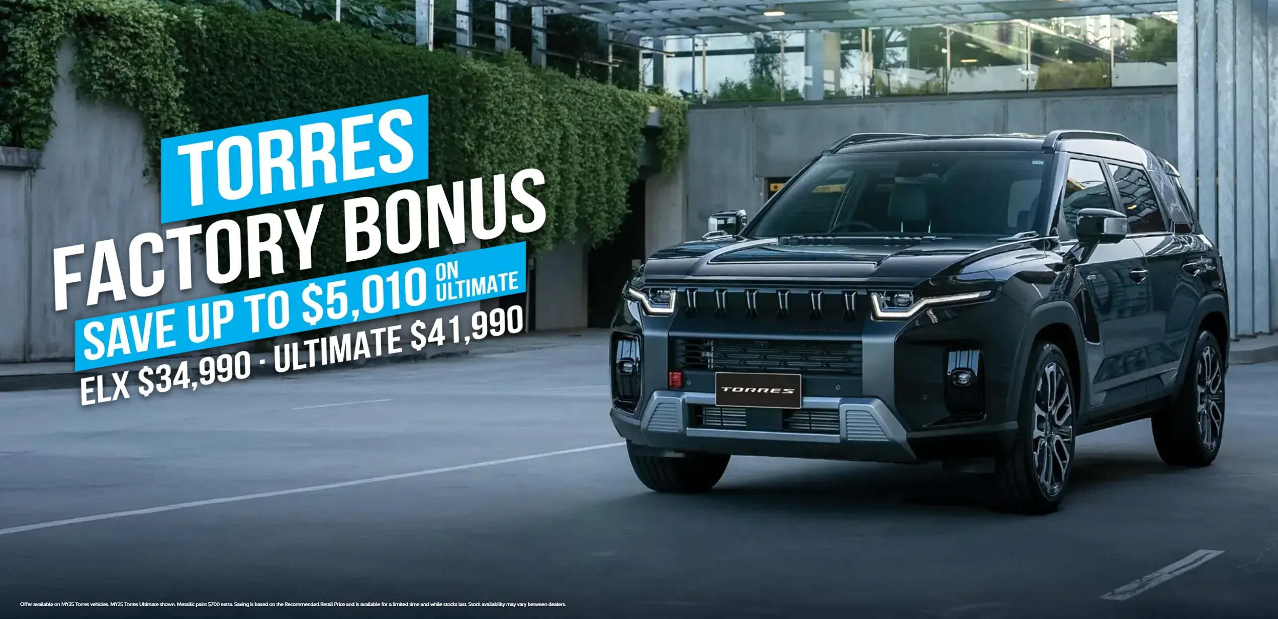 The All-New Torres features striking three-dimensional grille and headlights, LED daytime running lights and elevated ride that completes the SUV look.